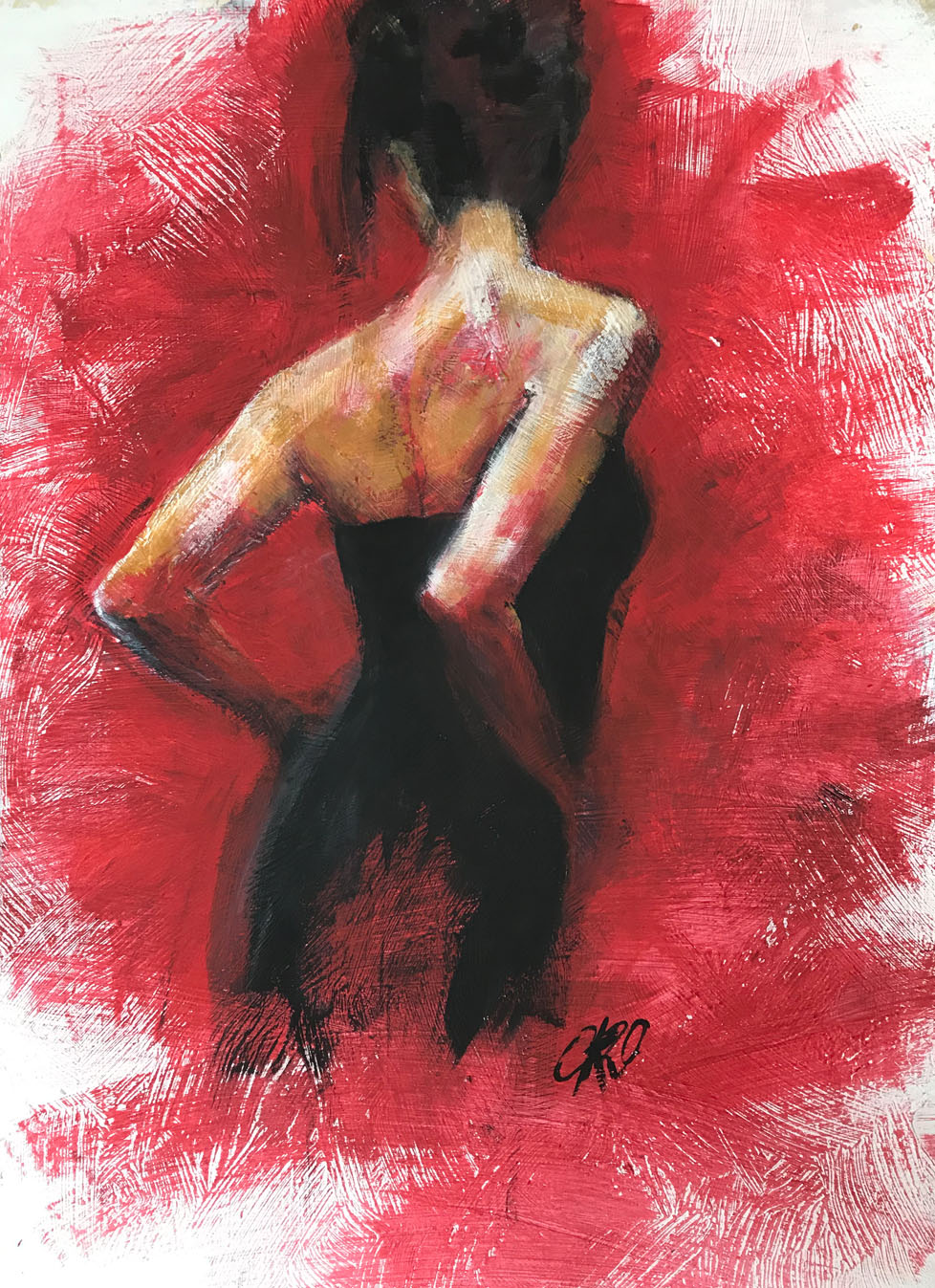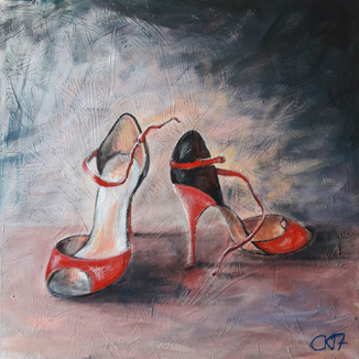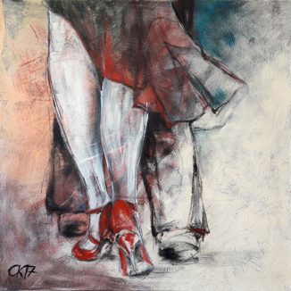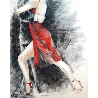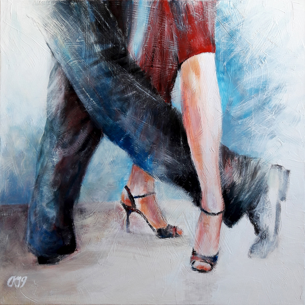 Als leidenschaftliche Tangotänzerin versuche ich, in meinen Werken die Faszination des Tango Argentino aus einem persönlichen Blickwinkel einzufangen und widerzuspiegeln. Mich interessieren insbesondere die dynamische Körperhaltung der Tanzpaare und die Innigkeit ihrer Bewegung. Meist beschränke ich mich auf Ausschnitte, welche die typischen charakteristischen Schritte und Figuren dieses außergewöhnlichen Tanzes festhalten und hervorheben. Die bewegten Szenen einer Milonga entstehen aus dem diffusen Nichts. Farben und Linien fangen die Lebendigkeit des Augenblicks ein. Durch die Reduzierung der Formen bis hin zur partiellen Auflösung fangen die Bilder die Melange aus Musik, Tanz und Emotion ein und setzen so die Magie des Tango Argentino in eine gefühlvolle Bildsprache um.